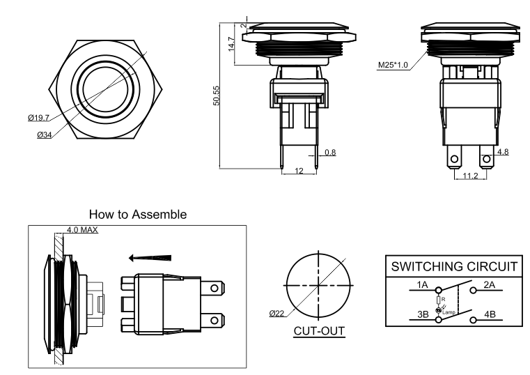 防水等級:IP65/IP67安裝尺寸:Φ16mm